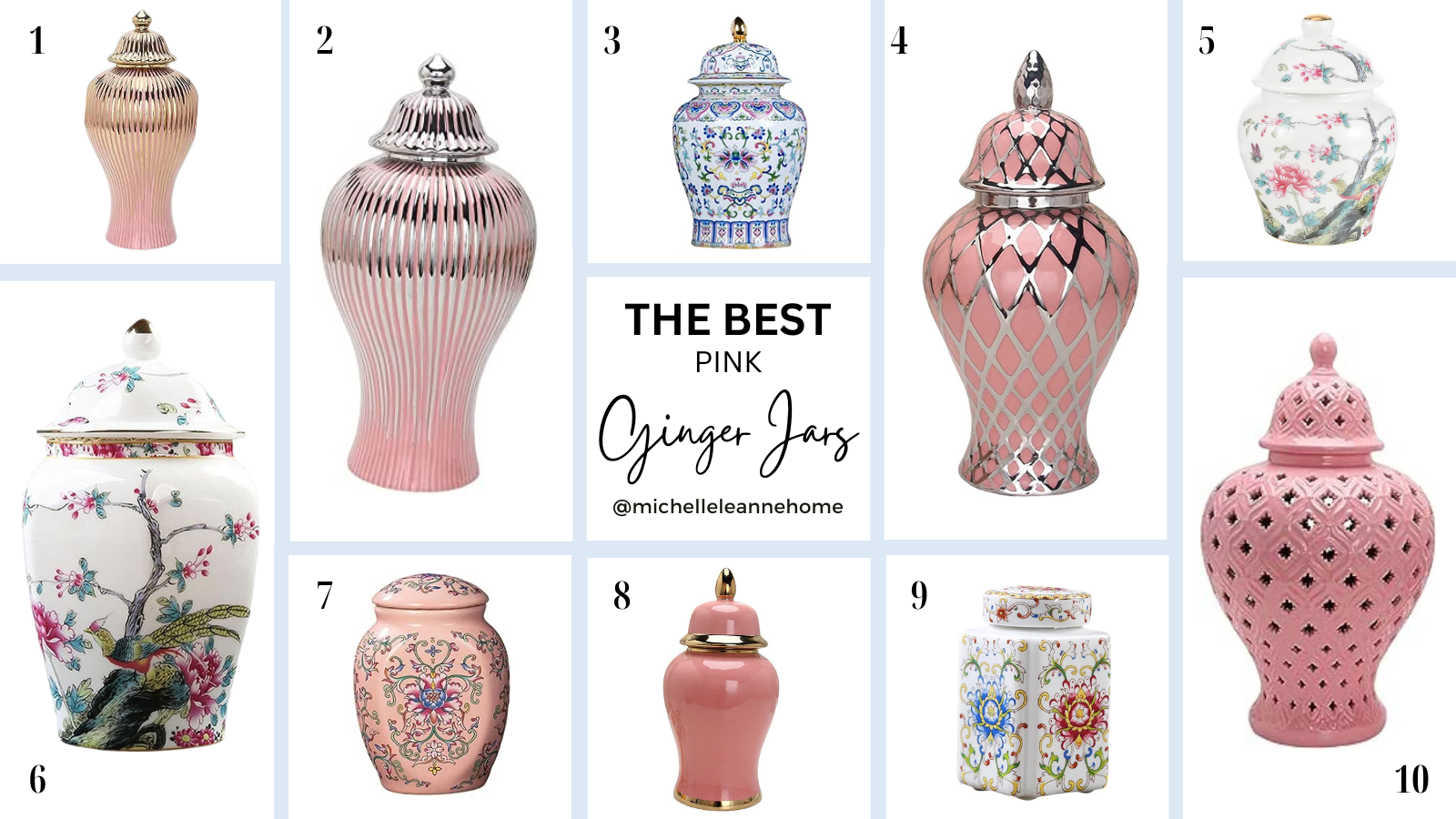 3. Pareks Ginger Jar - https://amzn.to/3OR7RhL 4. JISADER Pink & Silver Ginger Jar - https://amzn.to/3PdMJCP